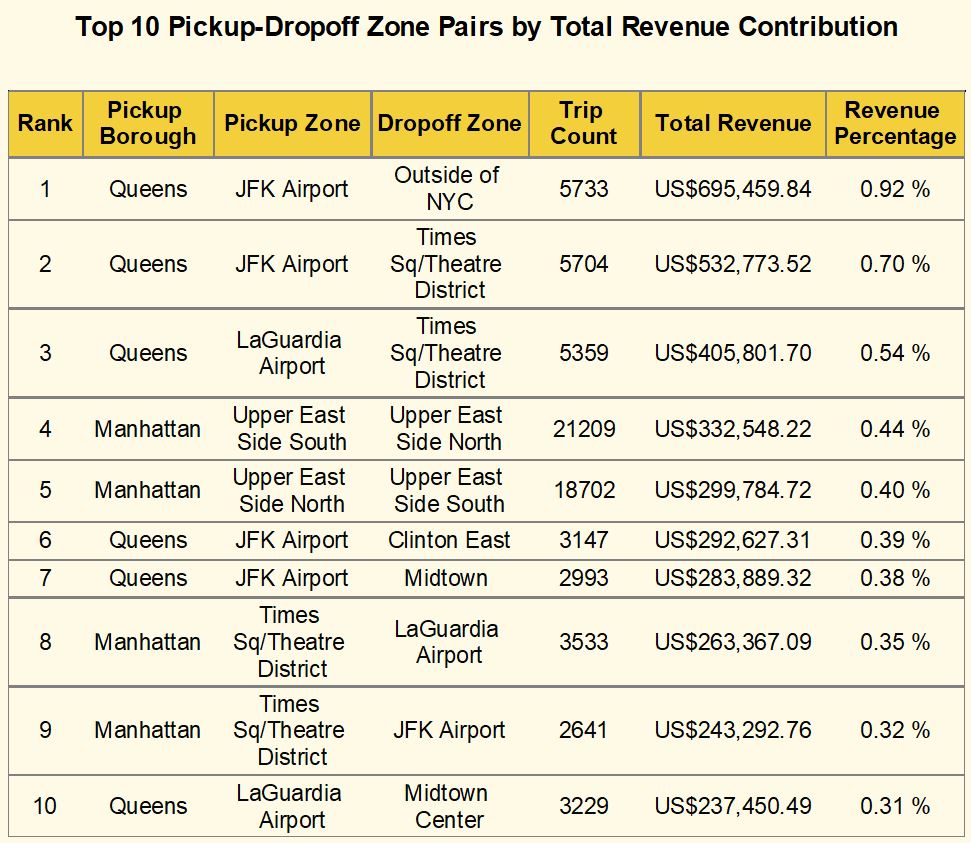 - Derived Column (Feature Engineering): Created logic to flag airport zones and categorize traffic density based on borough location.